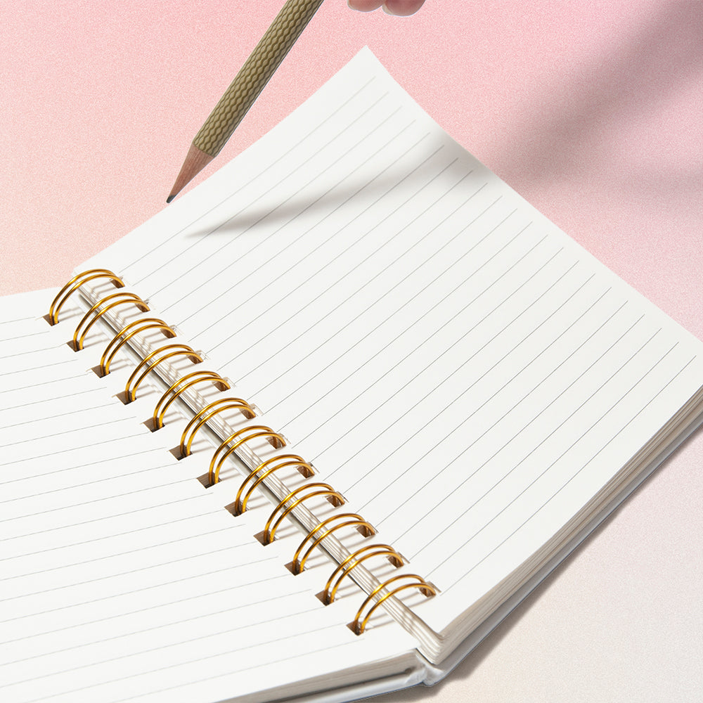 We wanted to view a notebook from a different angle, so we created this notebook featuring a parallelogram shape.